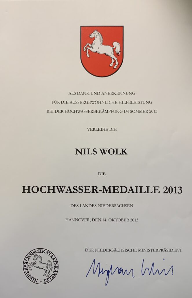 Deshalb ist die oft belächelte Idee vom „Fleißsternchen“ oder kleinen Abzeichen alles andere als banal. Sie ist der Einstieg in ein System, das Menschen konditioniert, Leistung mit positiver Resonanz zu verknüpfen. Ob im Sport, in der Schule oder im Beruf – das Prinzip bleibt gleich. Anerkennung verstärkt Verhalten. Immer. Wenn du das ignorierst, passiert etwas Gefährliches. Menschen verlieren die Verbindung zwischen Einsatz und Wirkung. Sie leisten weniger, nicht weil sie faul sind, sondern weil ihr Gehirn keinen Grund mehr sieht, mehr zu geben. Motivation ist kein Charakterzug, sondern eine Reaktion auf Systeme. Und Anerkennung ist eines der stärksten Systeme, die du hast. Und auch ich habe mich gefreut, als ich 2013 meine Fluthelfermedaille erhielt.